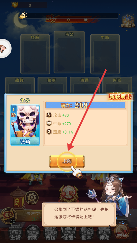 2、拖动卡牌布阵对抗,前排肉盾后排输出才是王道。