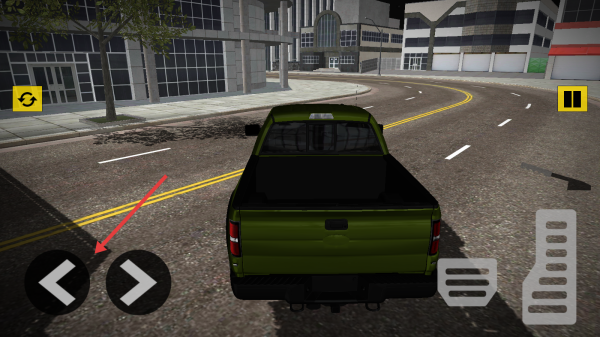 2、操控皮卡车行驶,用右侧按键控油门、刹车,在城市道路遵交规,避障碍前行。