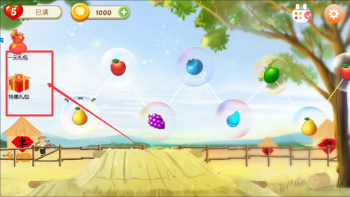 1、游戏以果园丰收为背景,采用Q萌可爱的水果元素设计,搭配清新亮丽的天空海岛和绿洲树丛场景,营造出轻松愉悦的视觉体验。