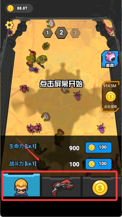 2、开始游戏前可以点击下方按键升级自己的战斗力。