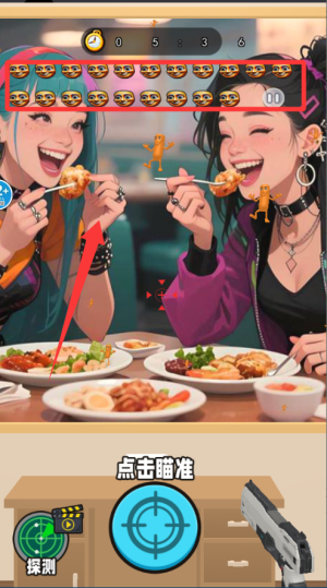 1、基础操作采用点选射击,通过点击可疑目标进行攻击。长按可放大观察细节,帮助识别伪装的外星人。