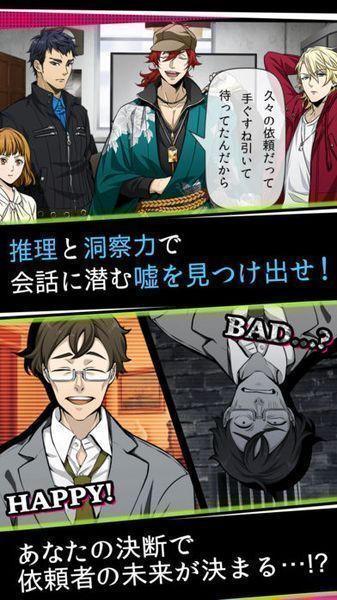 2、图形设计很美丽:人物形象美型养眼,场景画面细腻,从侦探事务所到事件现场视觉呈现舒适,主角的帅气形象更增添了视觉上的吸引力,提升沉浸感。