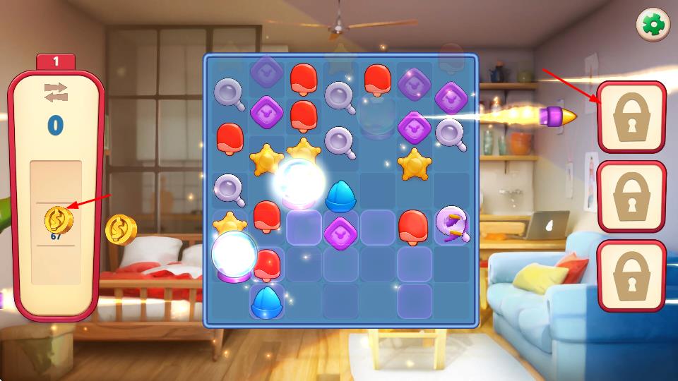1、三消闯关收集道具:通过完成三消关卡获取各类道具,利用道具解锁场景中的关键区域,为线索收集打开通路。