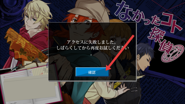 2、若遇弹窗提示「アクセスに失敗しました…」,点击【確認】按钮,稍后重试以解决访问故障。