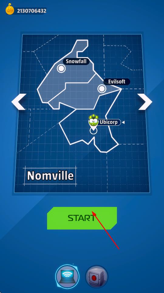1、进入游戏界面后,点击STARA按钮开启冒险,这是踏上omnom黑客之旅的首要操作,确保顺利开启闯关进程。