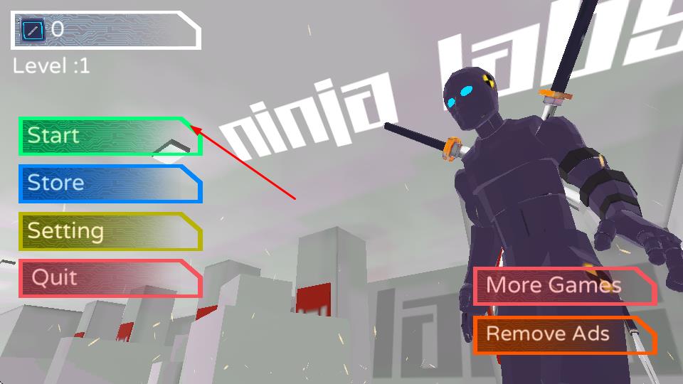 1、进入游戏界面后,点击【Start】按钮开启游戏,这是踏入忍者冒险世界的关键操作,确保顺利开启奇妙之旅。