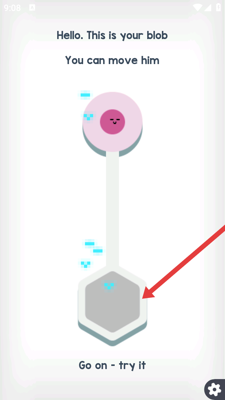 3、进入教学关卡,根据提示“Hello This is your blob You can move him”,点击或滑动屏幕操控粉色blob移动。