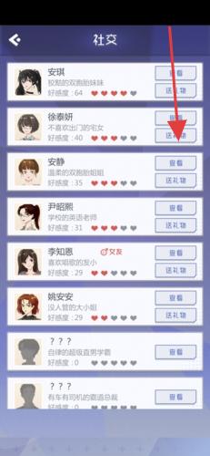 1、社交互动:在社交列表,点击“送礼物”提升与安琪、徐泰妍等角色好感度,解锁专属聊天。