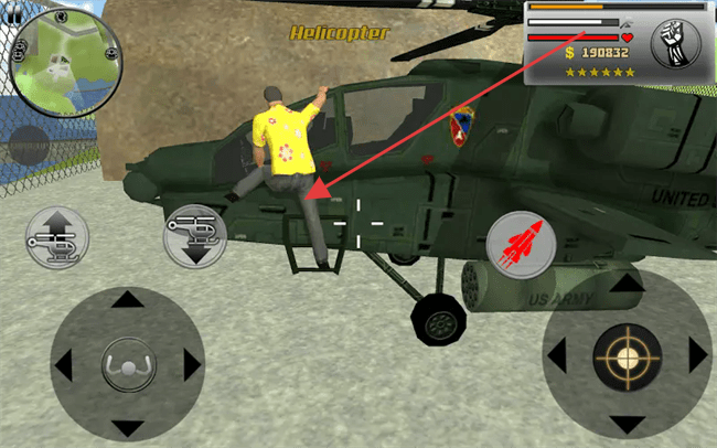 2、军事载具:发现直升机(标有Helicopter),攀爬进入驾驶舱,掌握飞行操作(升降、转向),利用武器(火箭弹)。