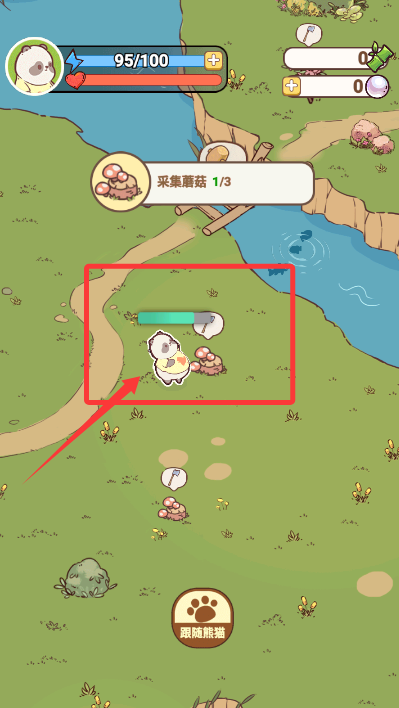 2、在森林探索时,需要收集3个蘑菇完成采集任务目标。