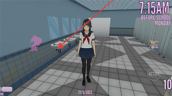 2、场景探索:穿梭不同校园区域(操场、教室、卫生间),留意环境细节(如樱花拱门、洗手台),触发随机事件、收集线索。