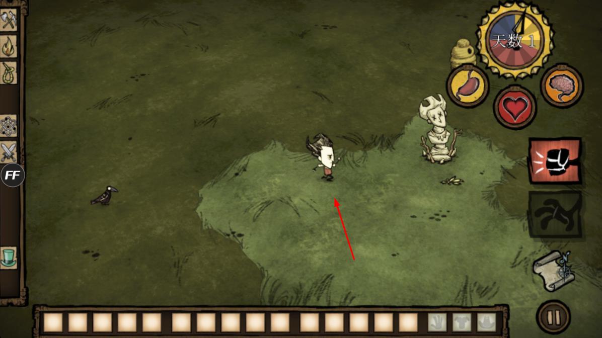 1、进入游戏后在出生点收集木材石头等基础材料,点击建造按钮制作篝火与简易庇护所,确保初始生存需求。