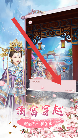 2、触发“清宫穿越”剧情,跟随箭头指引,与NPC互动,解锁对话内容,感受古代宫廷故事线。