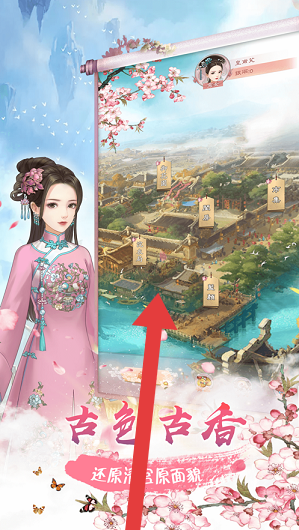 3、在“古色古香”场景,按箭头探索地图(如建筑),解锁区域,还原古代风貌,推进游戏进程。