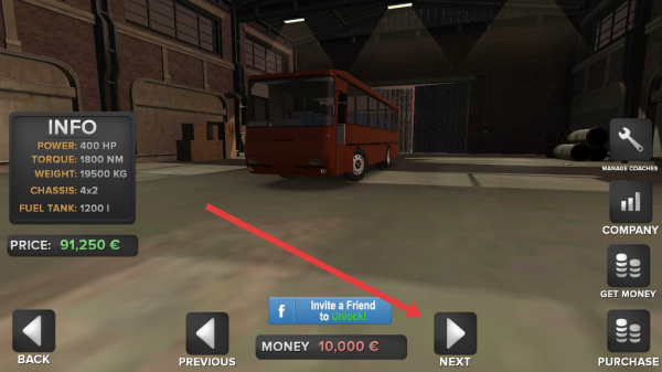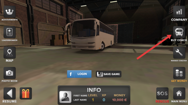 2、在游戏内界面,点击【BUYCOACH】按钮,进入巴士购买界面。