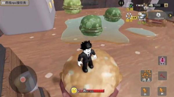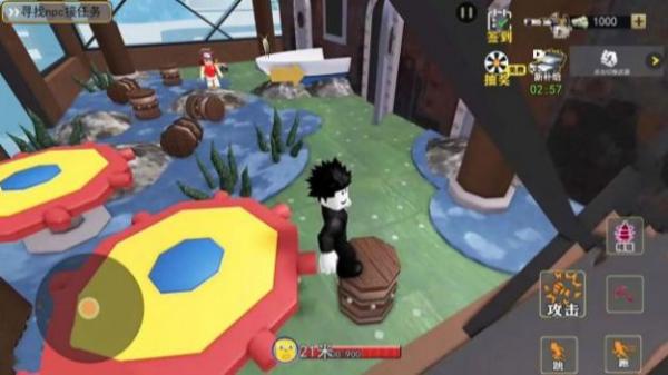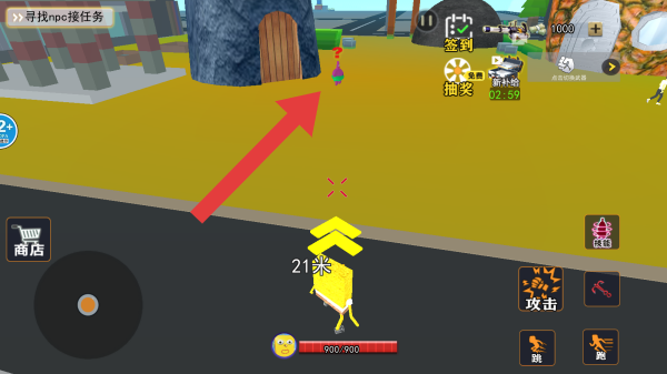 2、界面有“寻找npc接任务”提示、商店、攻击等功能按键,呈现出开放世界探索接取任务的场景,属于融合经典动漫形象的沙盒冒险类。