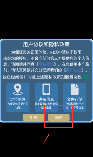 1、首次启动需阅读用户协议条款,点击确认按钮后进入游戏主菜单界面。