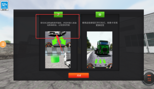 3、跟随交互式教学关卡逐步掌握转向、换挡等卡车驾驶技巧,完成基础考核后开启自由驾驶模式。