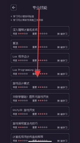 2、技能提升:在“专业技能”界面,优先学习高权重(如Lua程序设计)、高需求技能,提升工作效率,解锁高薪职业。