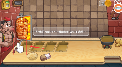 1、核心烹饪玩法,通过滑动、点击等手势操作完成切配、翻炒等工序,完美操作可提升菜品品质,获得额外小费奖励。
