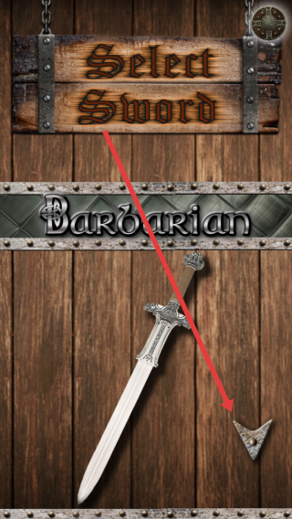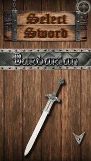 2、在选剑页,点击箭头指向的“Barbarian”系列刀剑,确认选择,进入互动玩法,体验武器特色。