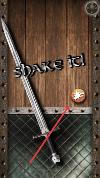 3、按提示“shake-it!”,摇晃设备或点击箭头指向的图标,触发刀剑互动效果,完成操作任务。