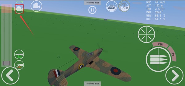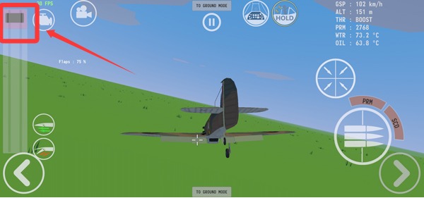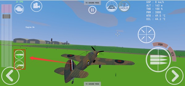 1、开始游戏后首先我们需要点击左上角的发动机,飞机就会发动。