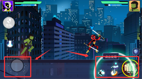 1、采用横版动作对战框架,通过虚拟摇杆与技能按键组合实现移动、攻击与释放技能等基础操作。