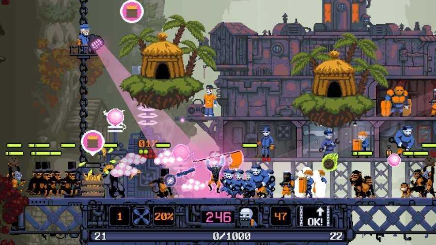1、扮演角色战斗:扮演弗拉基米尔与机械师们一起,与猴子战斗并一关关往上爬,打败误入炼狱的Boss交给地狱使者,完成拯救城市的使命。
