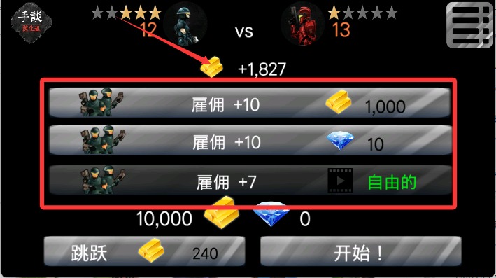 2、然后可以花费金条雇佣要上场的士兵。
