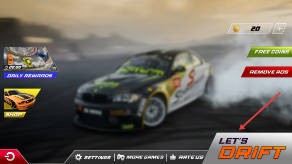 1、点“LET'S DRIFT”,选红色赛车(点“SELECT”),进入赛道,准备漂移竞速。
