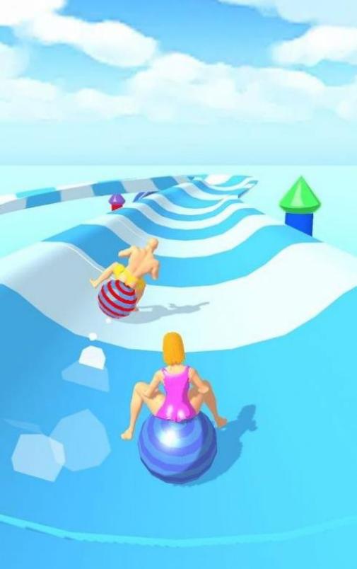 1、开局沿水滑道下滑,滑动屏幕控方向,避滑道边缘,保持滑行节奏。