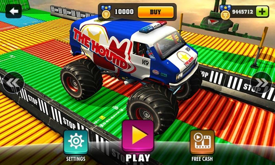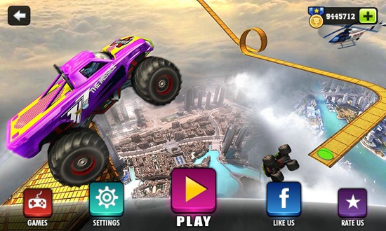 - 疯狂怪物卡车传奇是融合模拟驾驶与极限竞速的传奇之作,玩家驾驶巨型怪物卡车,在云中轨道、天际线赛道等奇幻场景中穿梭,穿越太空追踪路段与不可能的环形