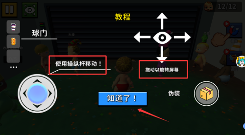 3、使用操纵杆移动角色,旋转屏幕调整视角。