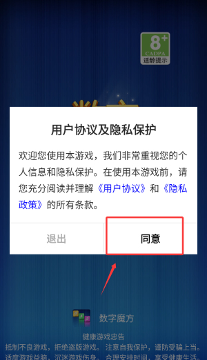 1、首次启动需阅读用户协议,点击底部确认按钮进入游戏主界面。