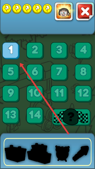 3、在关卡选择界面,点击数字按钮(如箭头指向的“1”),选择关卡,开始挑战,赢取“AWESOME-PRIZES”。