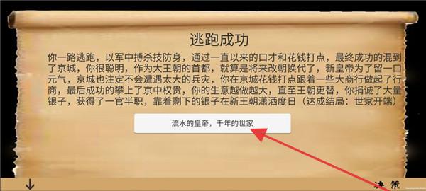 1、达成“世家开端”结局,点击“流水的皇帝,千年的世家”,回顾剧情,可选择开启新周目、继承存档,继续江湖生涯。