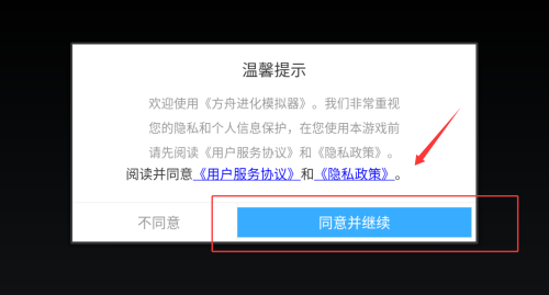 1、首次启动需阅读用户协议,确认同意后进入游戏主界面。