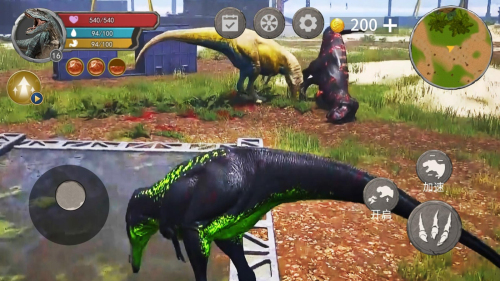1、真实生物行为模拟,每种恐龙都有独特习性模式。迅猛龙偏好群体狩猎,剑齿虎擅长单独伏击,需针对性制定应对策略。