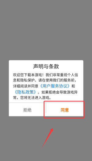 1、首次运行需阅读并确认用户协议,点击同意按钮后进入游戏主界面。