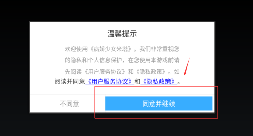1、首次启动需阅读用户协议条款,点击确认按钮后进入游戏主界面。