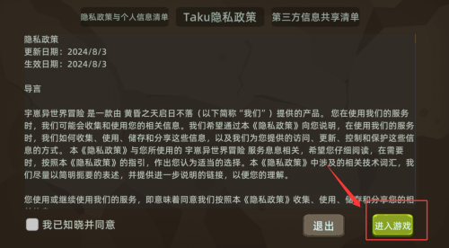 1、首次启动需阅读用户协议,确认同意后即可进入游戏主界面。