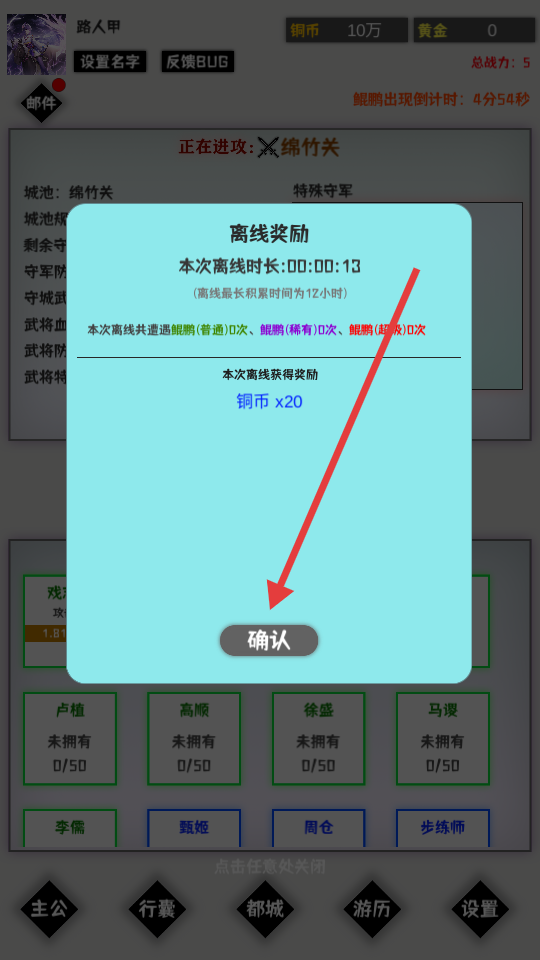 3、挂机八小时收获惊喜大礼包,可能抽到SSR吕布也可能领到一筐大白菜。