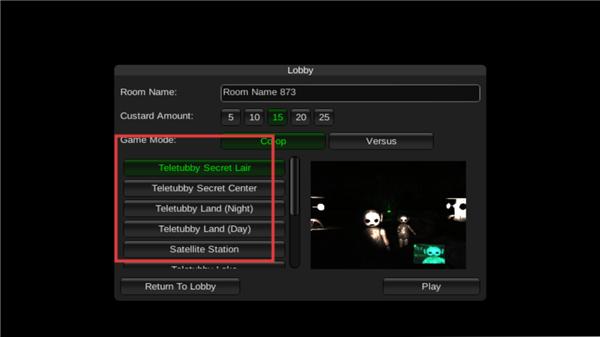 2、进入联机模式后选择你想玩的模式以及地形,点击Play开始游戏,其他玩家输入房间号即可进入一起游戏。