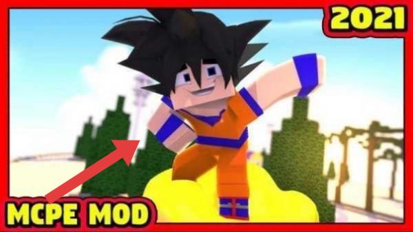 2、这是《我的世界》(Minecraft)基岩版(MCPE)的模组(MOD)宣传图,展示的是《龙珠》中的角色孙悟空。