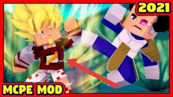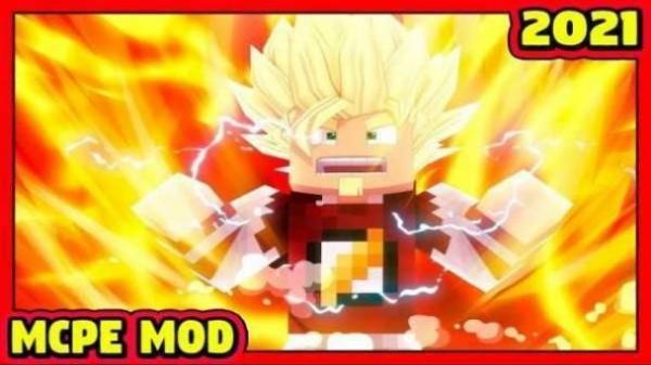 1、展示了《龙珠》中超级赛亚人形象的角色,文字“MCPEMOD”表明是适用于《我的世界》基岩版(MCPE)的模组。