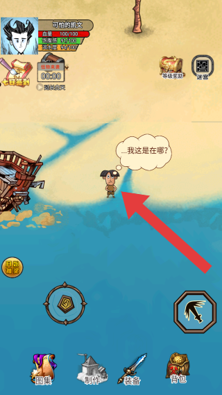 2、实体信息有角色,显示血量、攻击、防御等属性,还有界面元素,角色对话框文字“…我这是在哪?”,以及底部“图鉴”“制作”“装备”“背包”等功能按钮。