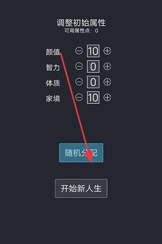 1、属性分配:在“调整初始属性”界面,根据玩法倾向(如颜值流、家境流),点击“+”“-”分配属性点。