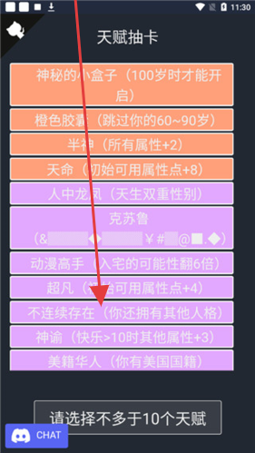 2、天赋选择:进入“天赋抽卡”,优先选强增益天赋(如“天命”+属性点、“半神”全属性+2),凑满≤10个天赋。