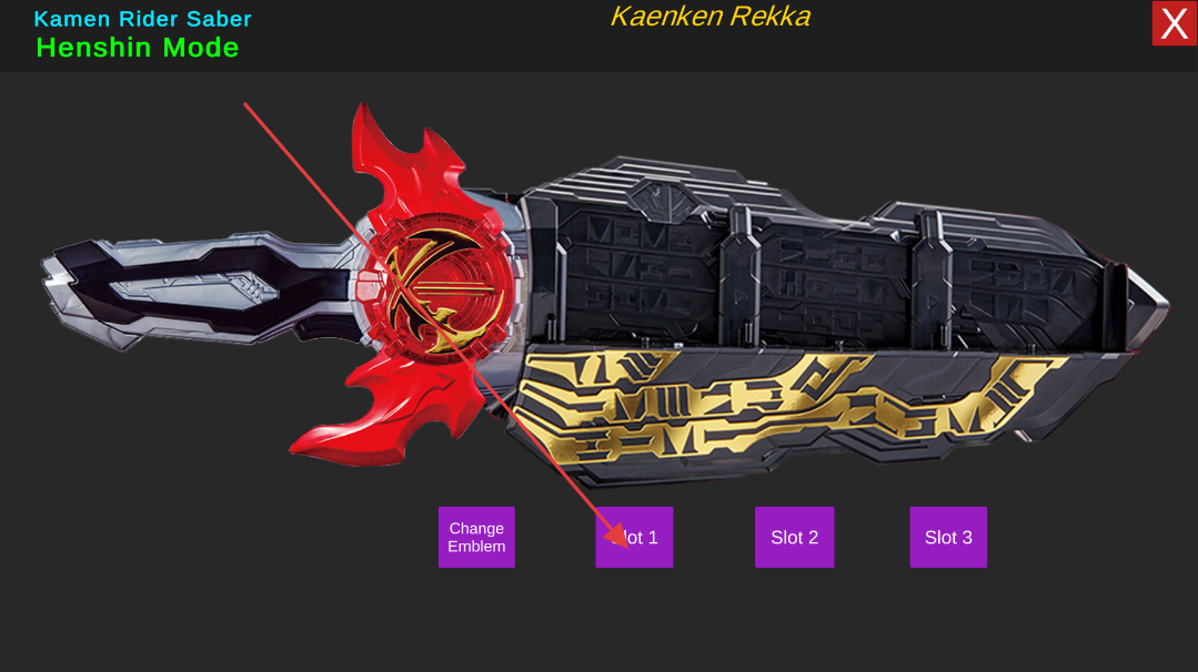 2、形态切换:针对“Seiken Sword Driver”,通过“Change Emblem”更换徽章,“Slot1-3”插入道具,触发不同变身形态。